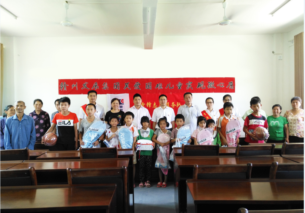 一個籃球、一副羽毛球拍、一個水壺……7月12日,贛州發(fā)展集團青年志愿者帶著滿滿的“愛心”來到精準扶貧點——南康區(qū)浮石鄉(xiāng)圳玄村,為困難兒童圓了微心愿。