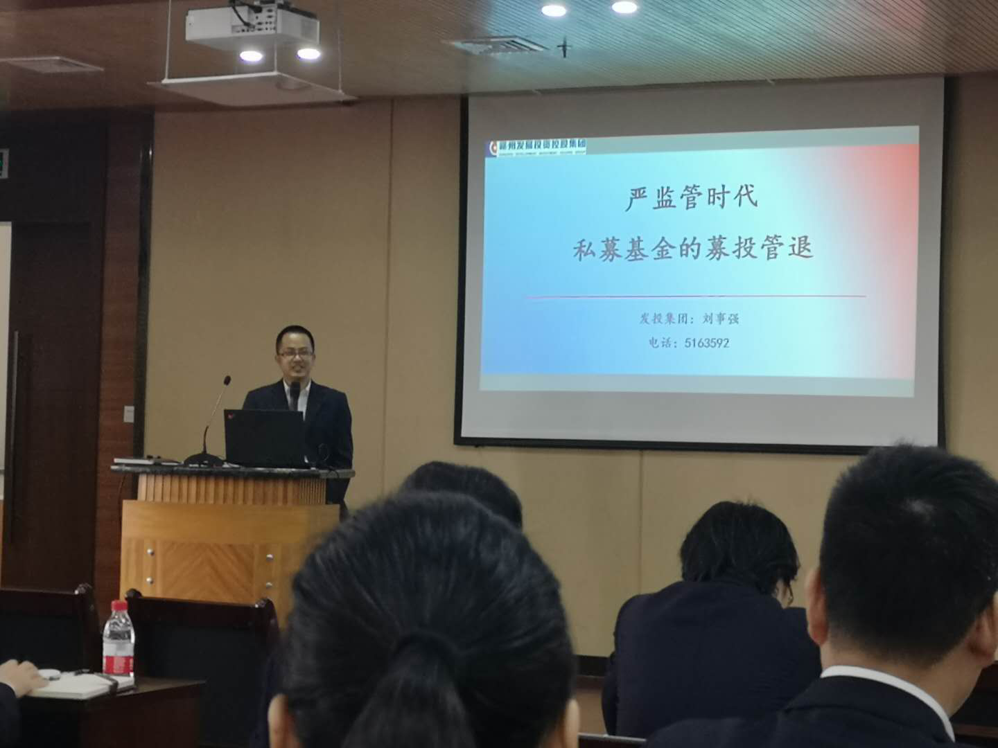 為進一步提升員工業務水平,拓寬知識面,加強交流思想,4月13日,集團在新時代文明實踐中心組織開展了“員工大講堂”活動,基金公司風控總監劉事強以《嚴監管時代私募基金的募投管退》為題授課。