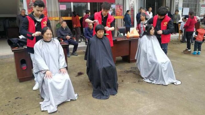 現(xiàn)場(chǎng)邀請(qǐng)的4名理發(fā)師志愿者按照順序依次為老人們理發(fā),圍罩衣、打濕頭發(fā)、設(shè)計(jì)發(fā)型、修剪頭發(fā)......好不熱鬧。截止目前,免費(fèi)理發(fā)人數(shù)達(dá)80余人。活動(dòng)的開展不僅為村民送去了夏日清涼,更加拉近了與村民的關(guān)系,為后續(xù)開展扶貧工作打下了良好的群眾基礎(chǔ)。