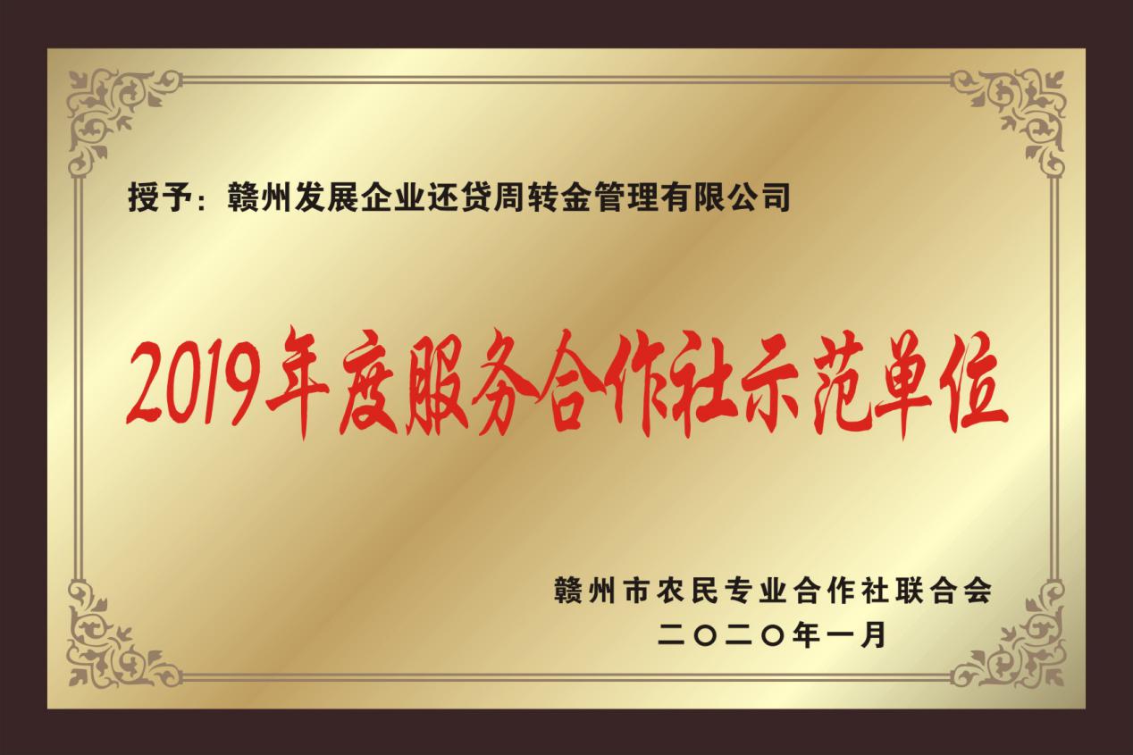 近日,贛州發展集團旗下企業還貸周轉金公司被贛州市農聯會授予“2019年度服務合作社示范單位”榮譽稱號。