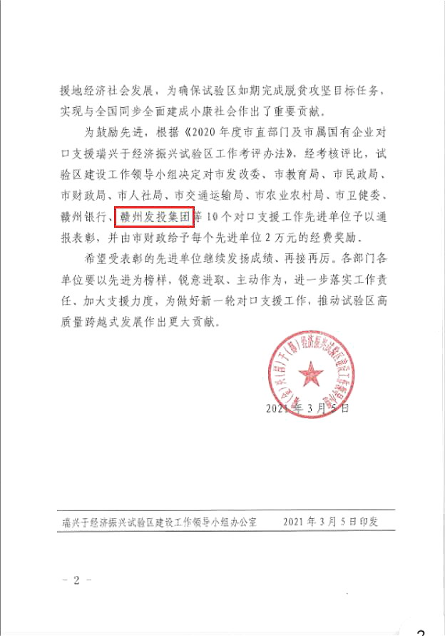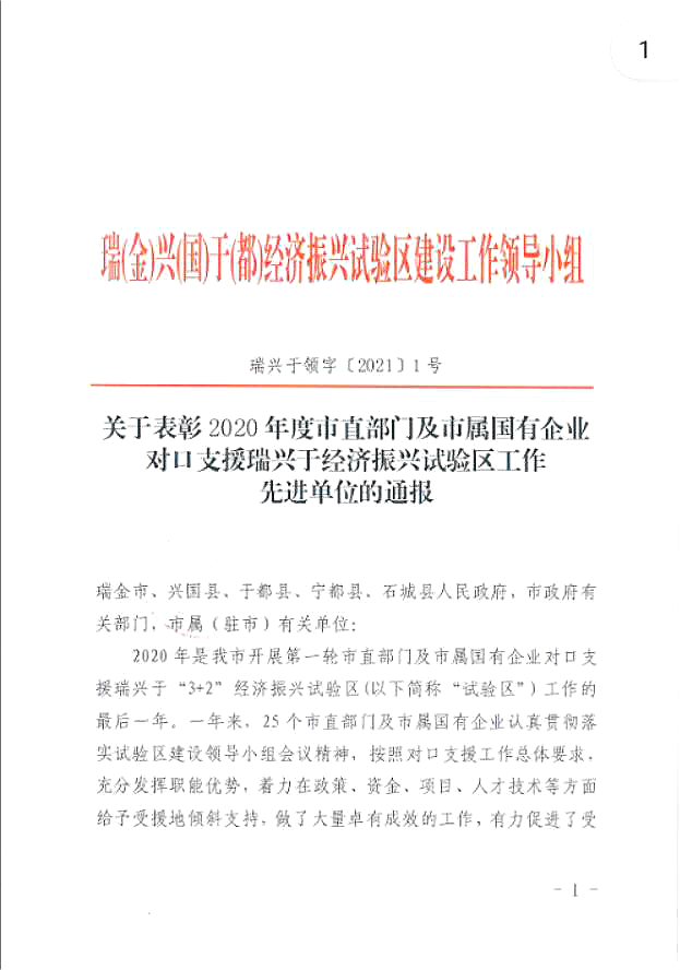 對(duì)口支援瑞興于經(jīng)濟(jì)振興實(shí)驗(yàn)區(qū)工作先進(jìn)單位通報(bào)