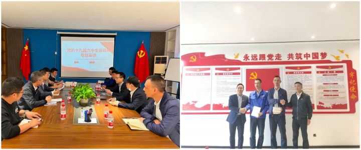 基金公司黨支部及供應鏈公司黨支部黨員一行通過參觀生產車間、座談交流等形式了解贛悅新材公司近期業務動態、資金周轉及產品創新等情況,并從分析當前形勢入手,宣講和解讀了黨的十九屆六中全會精神,教育引導企業員工充分認識到黨建工作對于破解企業發展難題的重要性。