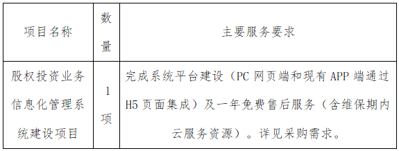 股權投資業務信息化管理系統建設采購項目的潛在供應商應在九鼎贛饒國際項目管理有限公司(贛州經濟技術開發區國際企業中心A2棟一樓)獲取采購文件,并2022年7月29日14點30分(北京時間)前提交響應文件。