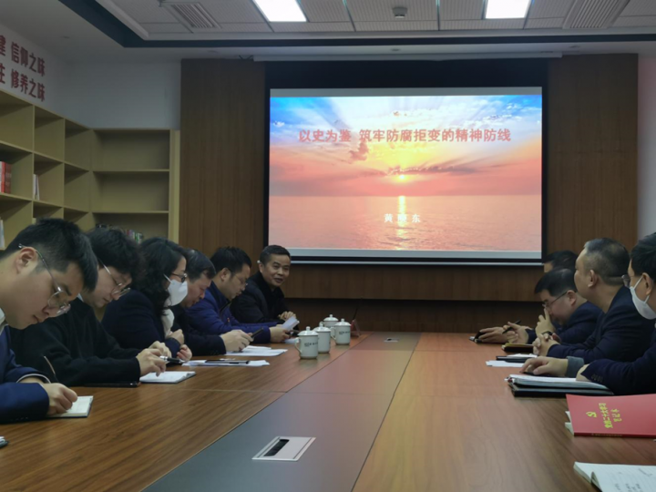 黃曉東以《以史為鑒筑牢拒腐防變的精神方向》為題,從毛澤東主席《滿江紅·和郭沫若同志》這首詞說起,向支部黨員分享了百年反腐的警示、不忘誓言、穿透歷史的思考、先烈血與淚的囑托、領袖的家風、發人深省的告誡等內容,闡述了中國共產黨在反腐倡廉建設和作風建設百年歷程中的初心使命,期間還與大家重溫了入黨誓詞,號召要始終保持“永遠在路上”的韌勁,以更加堅定的政治定力、昂揚的奮發斗志、過硬的能力作風,全力以赴在推動國資國高質量發展上展現新擔當、新作為。