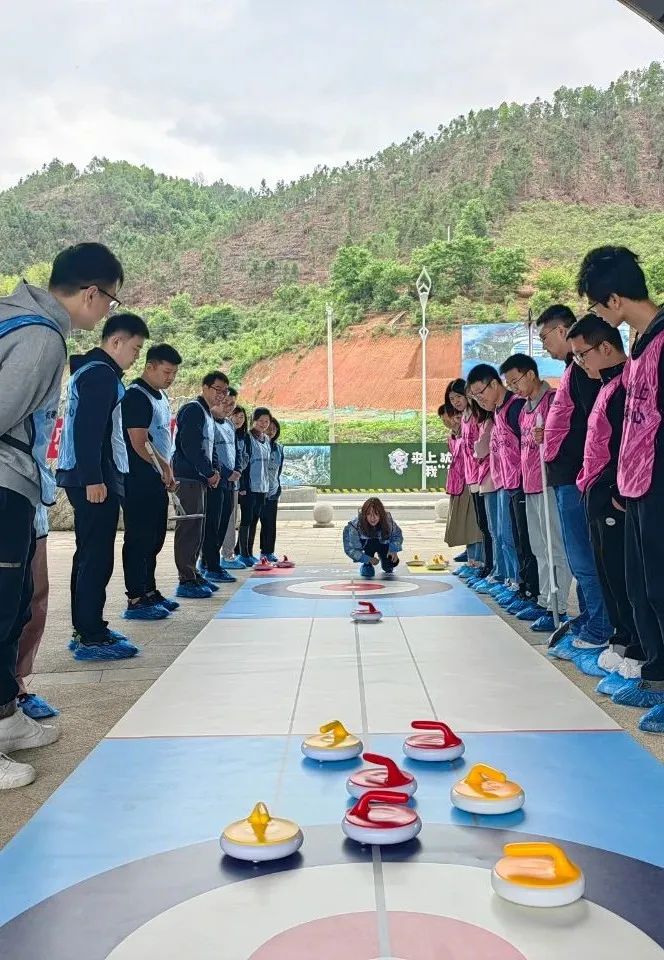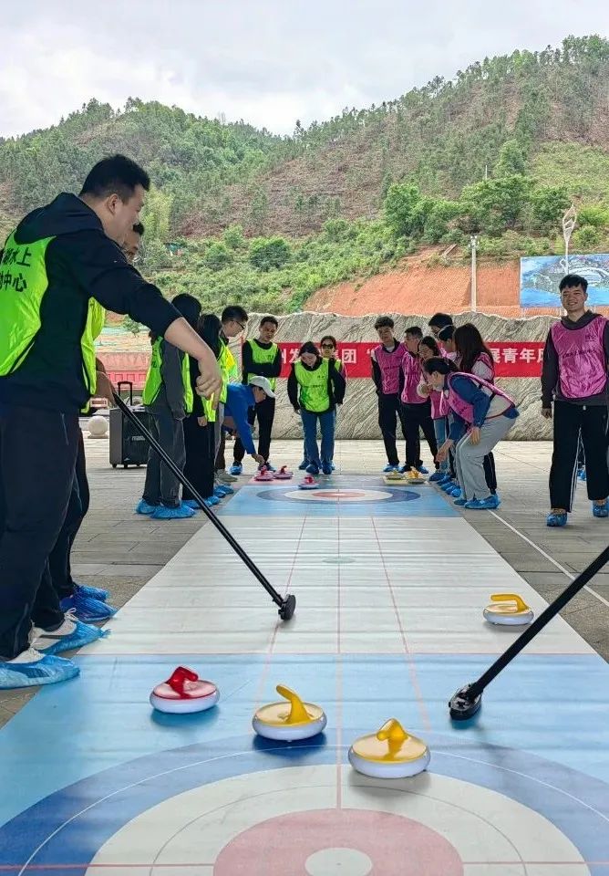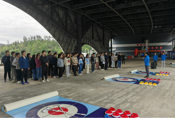 隨后,全體青年職工分為6隊(duì)進(jìn)行“破冰起航”,選拔隊(duì)長(zhǎng),商定隊(duì)訓(xùn)、隊(duì)型、隊(duì)歌,并進(jìn)行團(tuán)隊(duì)風(fēng)采展示,在熱烈氣氛中增進(jìn)了團(tuán)隊(duì)認(rèn)識(shí),凝聚了團(tuán)隊(duì)力量。在陸上冰壺團(tuán)建項(xiàng)目中,每隊(duì)隊(duì)員精心謀劃對(duì)策、交流投壺技巧,精準(zhǔn)找好角度,擺出標(biāo)準(zhǔn)姿勢(shì),為己方冰壺保駕護(hù)航,不時(shí)有隊(duì)員打出好壺。大家以“友誼第一、比賽第二”的良好心態(tài)積極參與,齊心配合,展現(xiàn)出了集團(tuán)青年職工的良好精神風(fēng)貌。