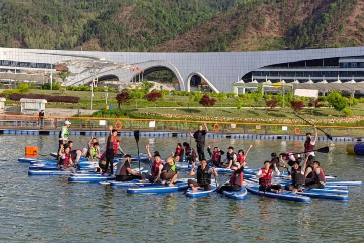 活動(dòng)最后環(huán)節(jié),開(kāi)展了水上漿板團(tuán)建項(xiàng)目,基地教練帶領(lǐng)大家著重訓(xùn)練了水上安全救生能力和應(yīng)急協(xié)調(diào)能力,大家通過(guò)學(xué)習(xí)水上漿板基本操控,鍛煉了身體平衡性和反應(yīng)敏捷性,活動(dòng)氛圍緊張而又熱烈,團(tuán)隊(duì)默契得到進(jìn)一步提升。