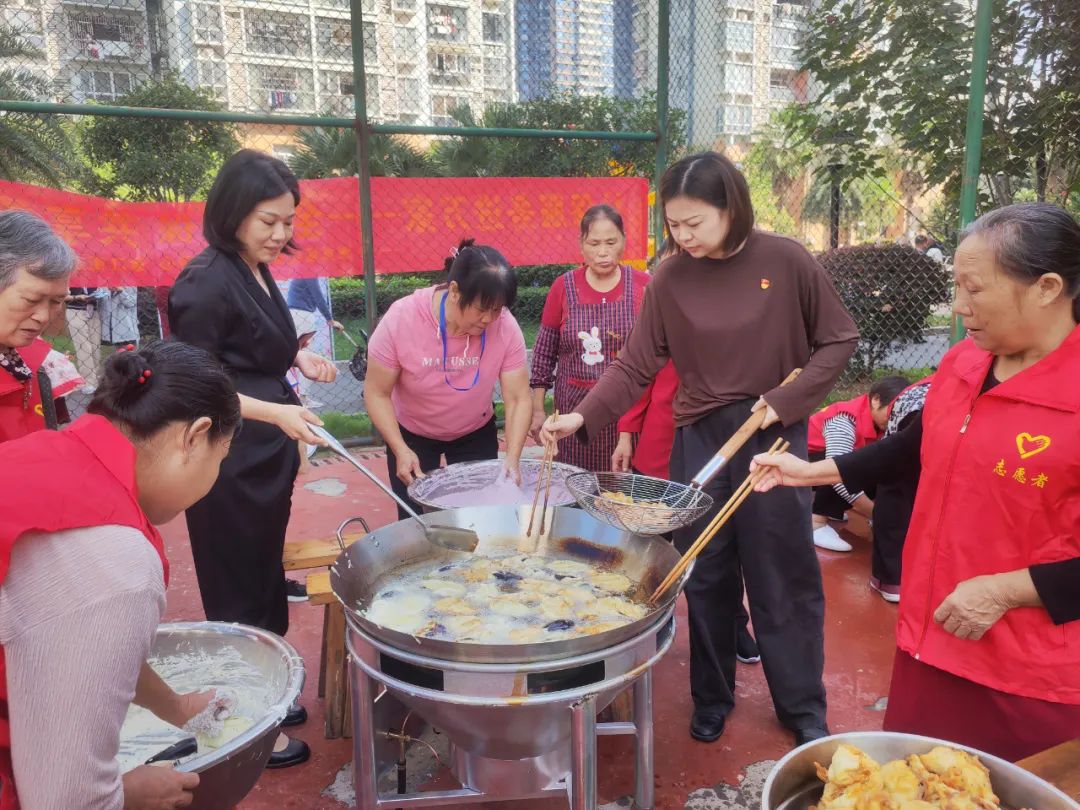 活動(dòng)現(xiàn)場,志愿者們攜手為小區(qū)老人共同制作贛南客家傳統(tǒng)美食米果和擂茶,組織眼科醫(yī)院為老人們健康義診,與老人們?cè)捈页!柪渑犂先藗冎v述家里孝親敬老的故事,了解他們有什么需要解決的問題,向老人們致以節(jié)日的問候和祝福,祝他們生活愉快,身體健康。志愿者的到來,讓平日里安靜祥和的小區(qū)一下子熱鬧起來,讓老人們感受到社會(huì)的關(guān)愛。