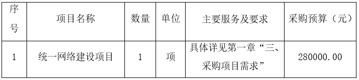 項目名稱:統(tǒng)一網(wǎng)絡(luò)建設(shè)項目