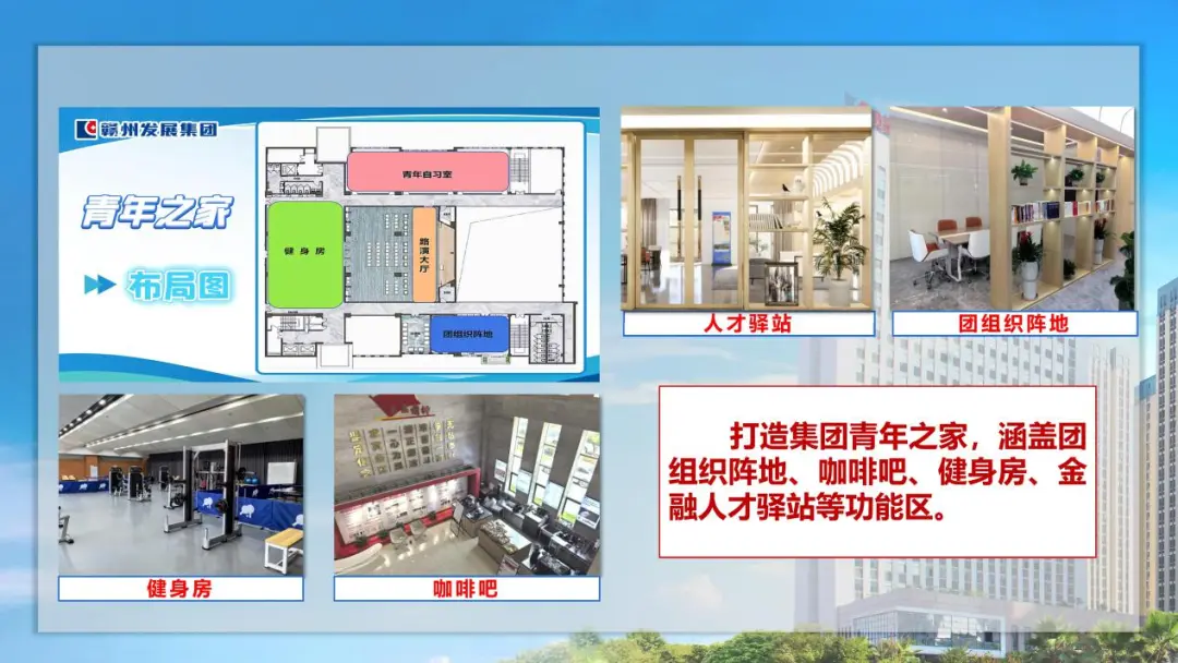 集團青年職工在加快“五區一體化”快速路項目建設、推動全市鋰和螢石資源整合、運營產業基金助力我市產業轉型升級等重點工作中爭先創優、建功立業。積極履行全國青年發展型城市建設試點單位職責,將青年發展型城市建設工作要求納入黨委工作要點,協調相關單位部門在總規模5億元的贛州市人才創新創業基金中預留10%的基金份額優先支持研發團隊帶頭人年齡在45周歲及以下的青年人才創業項目,并征求團市委等單位意見建議,助力贛州市通過全國青年發展型城市建設試點中期評估,有效解決青年創業人才“有智無資”問題。成立集團青年先鋒隊、青年突擊隊,積極開展社區志愿服務、關愛留守兒童、慰問孤寡老人、無償獻血、義務植樹等志愿服務活動。有效激發了青年職工青春正能量。打造集團青年之家,涵蓋團組織陣地、咖啡吧、健身房、金融人才驛站等功能區,有效拴牢青年人才“紐帶”,搭建青年交流“橋梁”。