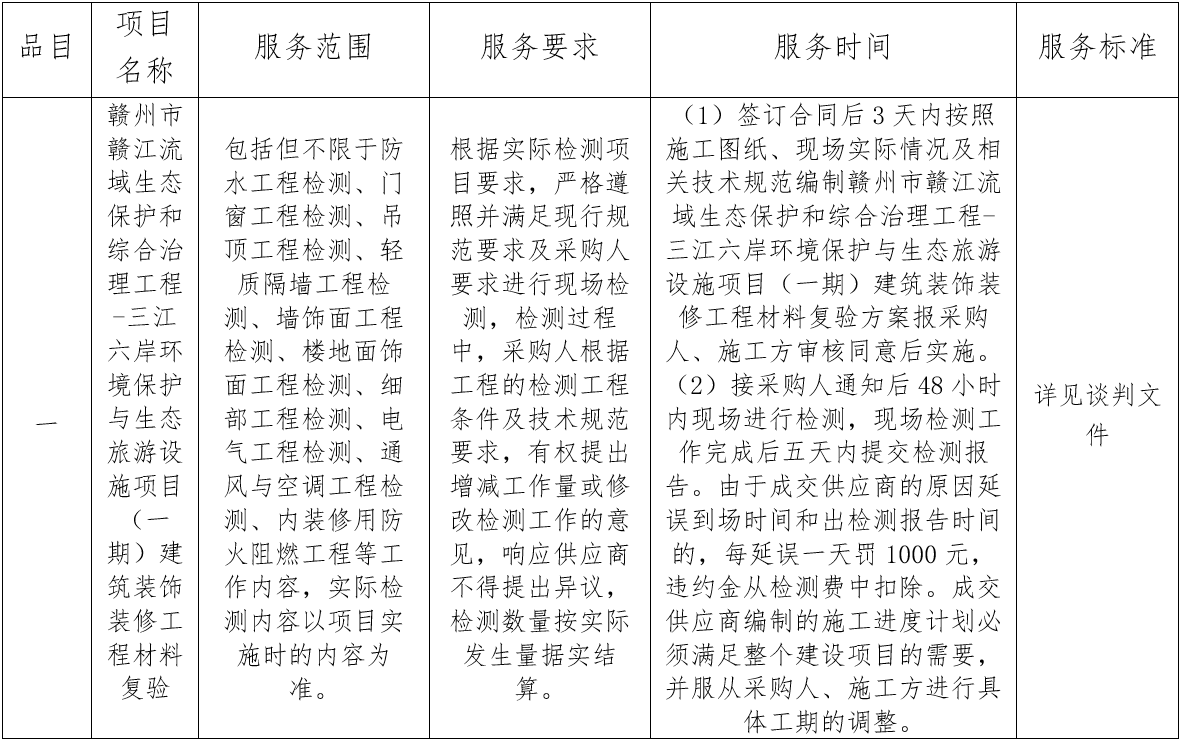 贛州市贛江流域生態保護和綜合治理工程-三江六岸環境保護與生態旅游設施項目(一期)建筑裝飾裝修工程材料復驗競爭性談判成交結果公告