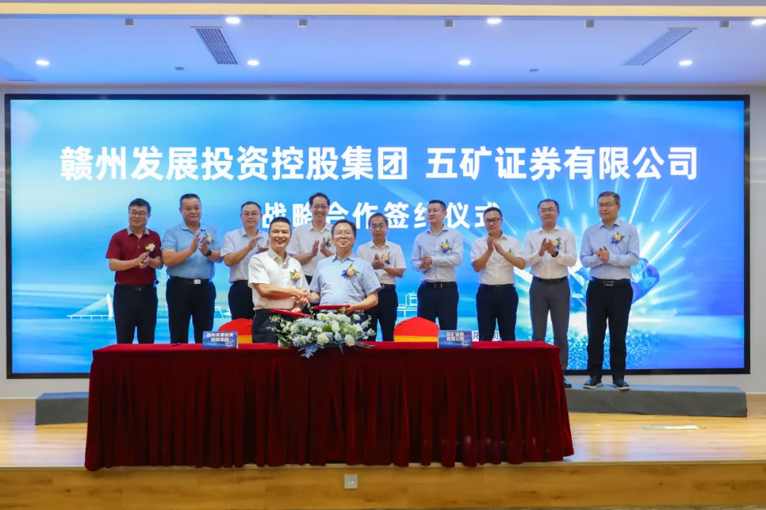 會上,贛州發展集團黨委委員、副總經理廖生興,五礦證券黨委委員、副總經理王學飛,在各位領導和到場嘉賓的見證下共同簽訂合作協議。