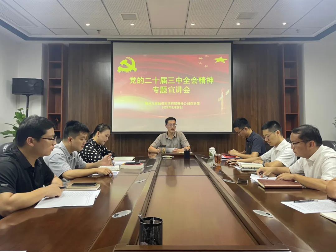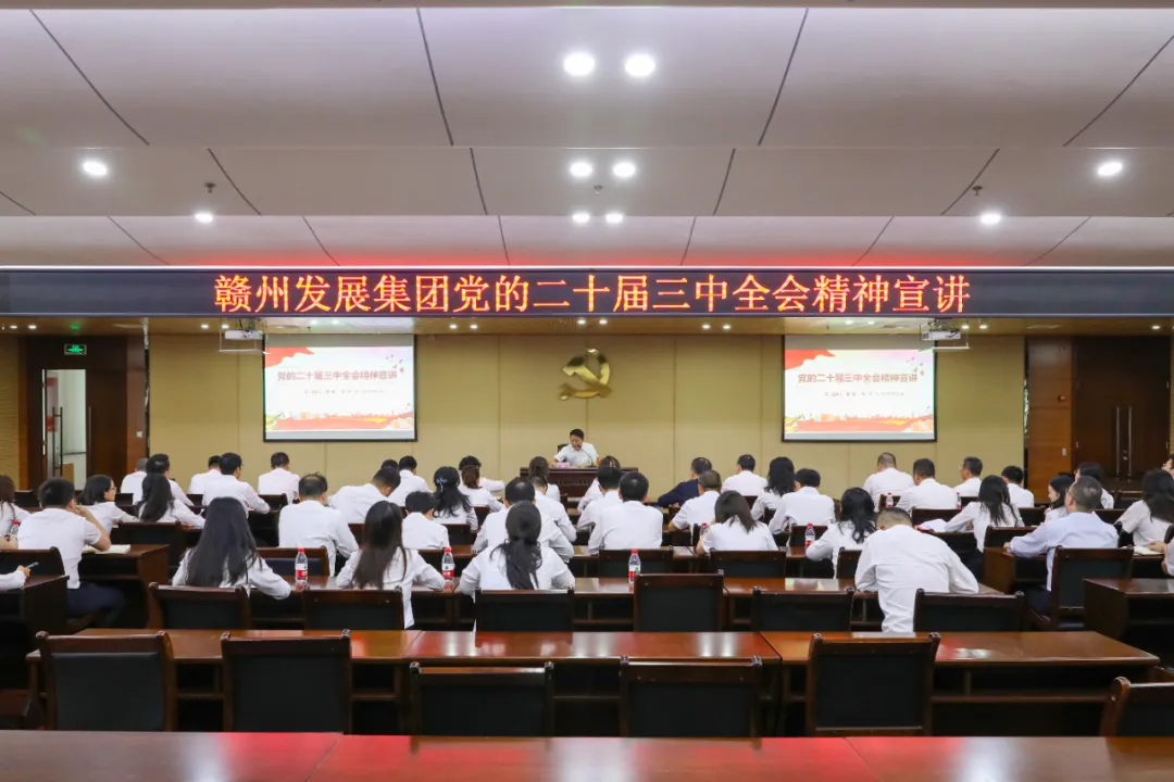 近段時間以來,贛州發展集團黨委班子成員深入基層,面向一線黨員、干部職工宣講黨的二十屆三中全會精神,緊緊圍繞習近平總書記在黨的二十屆三中全會上的重要講話和全會《決定》,對黨的二十屆三中全會的重大意義、黨的二十屆三中全會的主要成果和精神實質等進行了全面宣講和深入闡釋,并結合集團業務特點和重點工作,就學習貫徹落實全會精神提出具體工作要求,推動黨的二十屆三中全會精神在集團落地生根、開花結果。