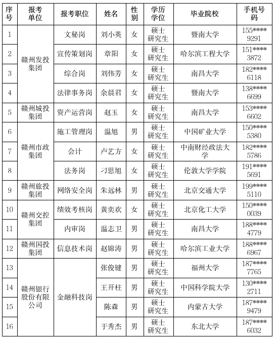 贛州市屬國企2024年組團(tuán)引才(東北站)擬錄用人員名單公示