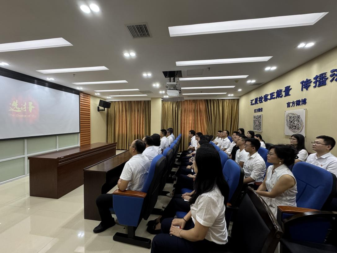 在廉政文化展示廳,黨員依次參觀“重拳出擊懲貪腐”“剖案析理警世人”“護花—全面預防花綻放”三大展區,聆聽現場講解,觀看違紀違法干部警示案例、懺悔錄像及歷代名人廉潔家風故事展陳。隨后,集中觀看由贛州本地真實案例改編的微電影《選擇》,以 “身邊人、身邊事” 為切入點,接受 “沉浸式” 警示教育,深刻感悟違紀違法對個人、家庭及社會的危害。