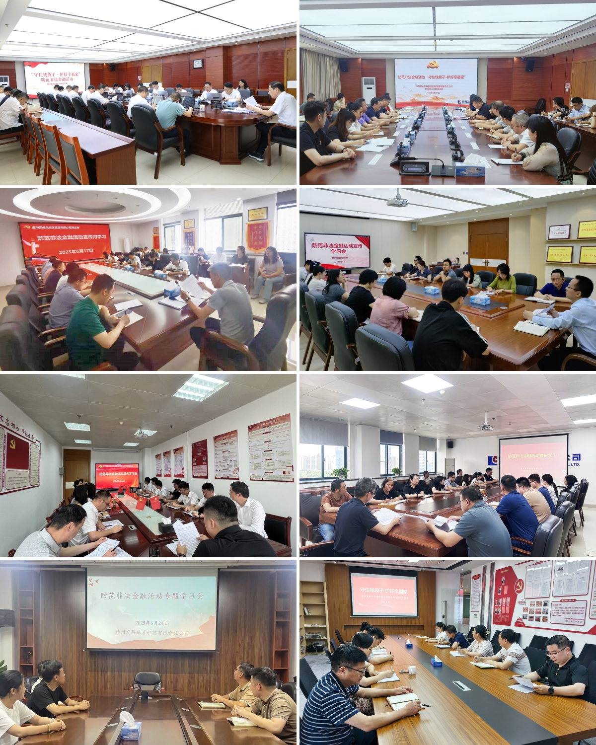 集團(tuán)黨委集中學(xué)習(xí)中央及上級(jí)關(guān)于防范化解金融風(fēng)險(xiǎn)的決策部署,強(qiáng)化政治擔(dān)當(dāng)。下屬11個(gè)黨支部同步開(kāi)展主題學(xué)習(xí),通過(guò)案例剖析、警示教育等形式,引導(dǎo)全員認(rèn)清非法金融活動(dòng)危害,爭(zhēng)當(dāng)“防非”宣傳踐行者,凝聚全員共識(shí)。