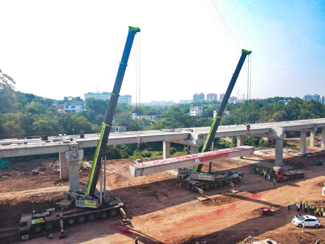 【快速路攻堅“戰報”】贛州中心城區武陵大道快速路Ⅱ標段主線高架最后一榀小箱梁架設完成