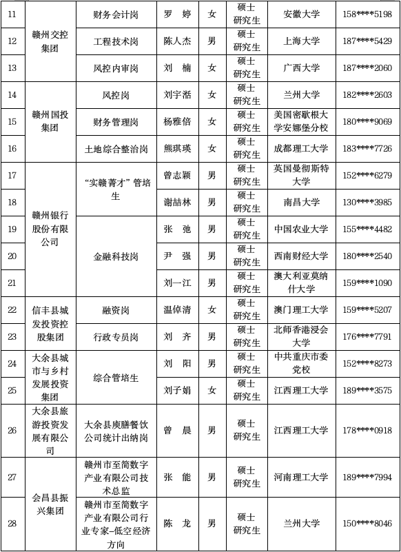 贛州市國有企業(yè)赴蘭州引才簽約28人,現(xiàn)予公示