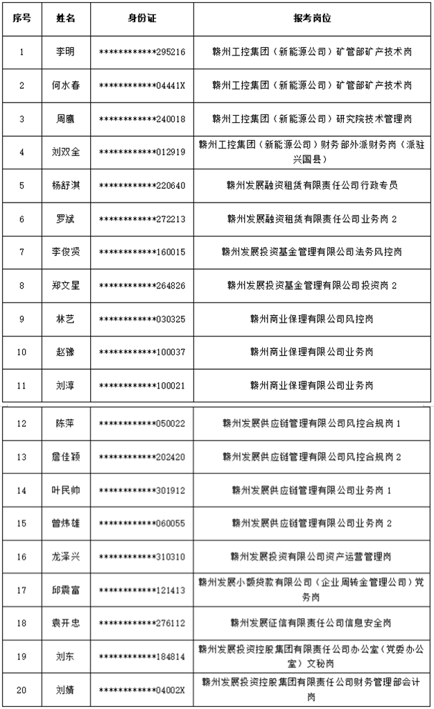 贛州工控集團(tuán)(新能源公司)副總經(jīng)理、贛州市紀(jì)委監(jiān)委駐贛州發(fā)投集團(tuán)紀(jì)檢監(jiān)察組紀(jì)檢監(jiān)察員2個(gè)崗位根據(jù)有關(guān)要求另行公告。贛州工控集團(tuán)(新能源公司)財(cái)務(wù)部外派于都縣財(cái)務(wù)崗位的入圍候選人已自愿放棄錄用資格,經(jīng)研究,該崗位不再予以遞補(bǔ)。