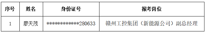根據《贛州發展投資控股集團有限責任公司2025年公開招聘公告》,經報名、資格審查、第一輪面試、第二輪面試、體檢、考察等程序,現將贛州工控集團(新能源公司)副總經理擬錄用人員名單及有關事項公告如下: