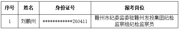 根據《贛州發展投資控股集團有限責任公司2025年公開招聘公告》,經報名、資格審查、筆試、第二輪面試、體檢、考察等程序,現將贛州市紀委監委駐贛州發投集團紀檢監察組紀檢監察員擬錄用人員名單及有關事項公告如下: